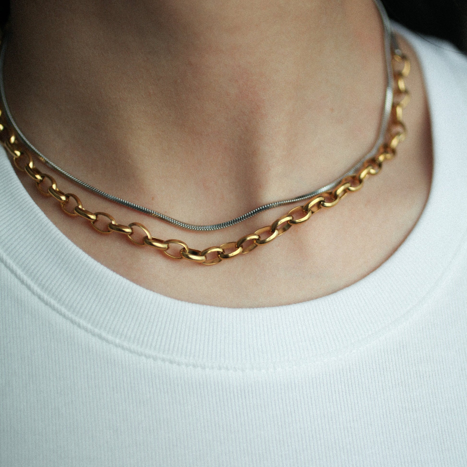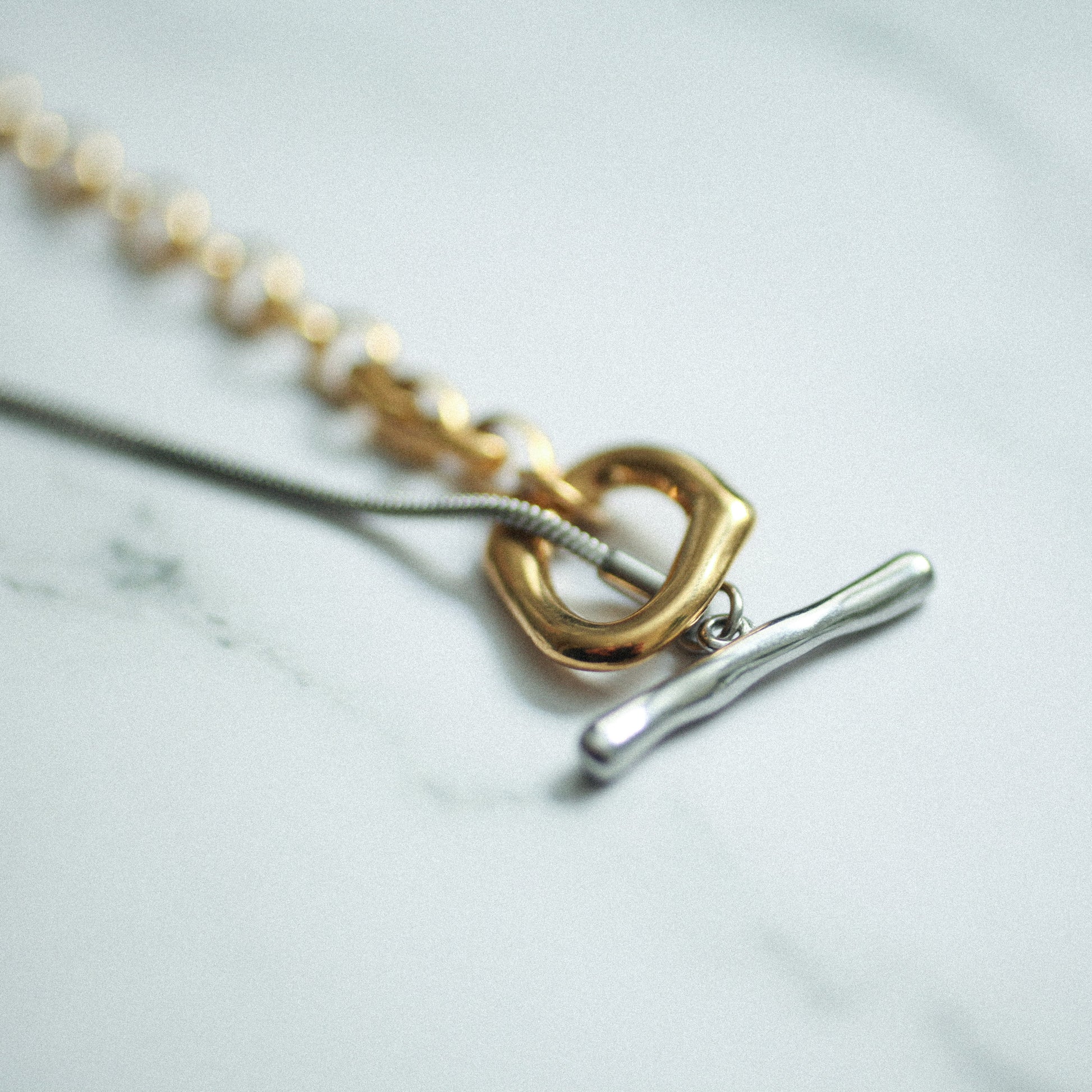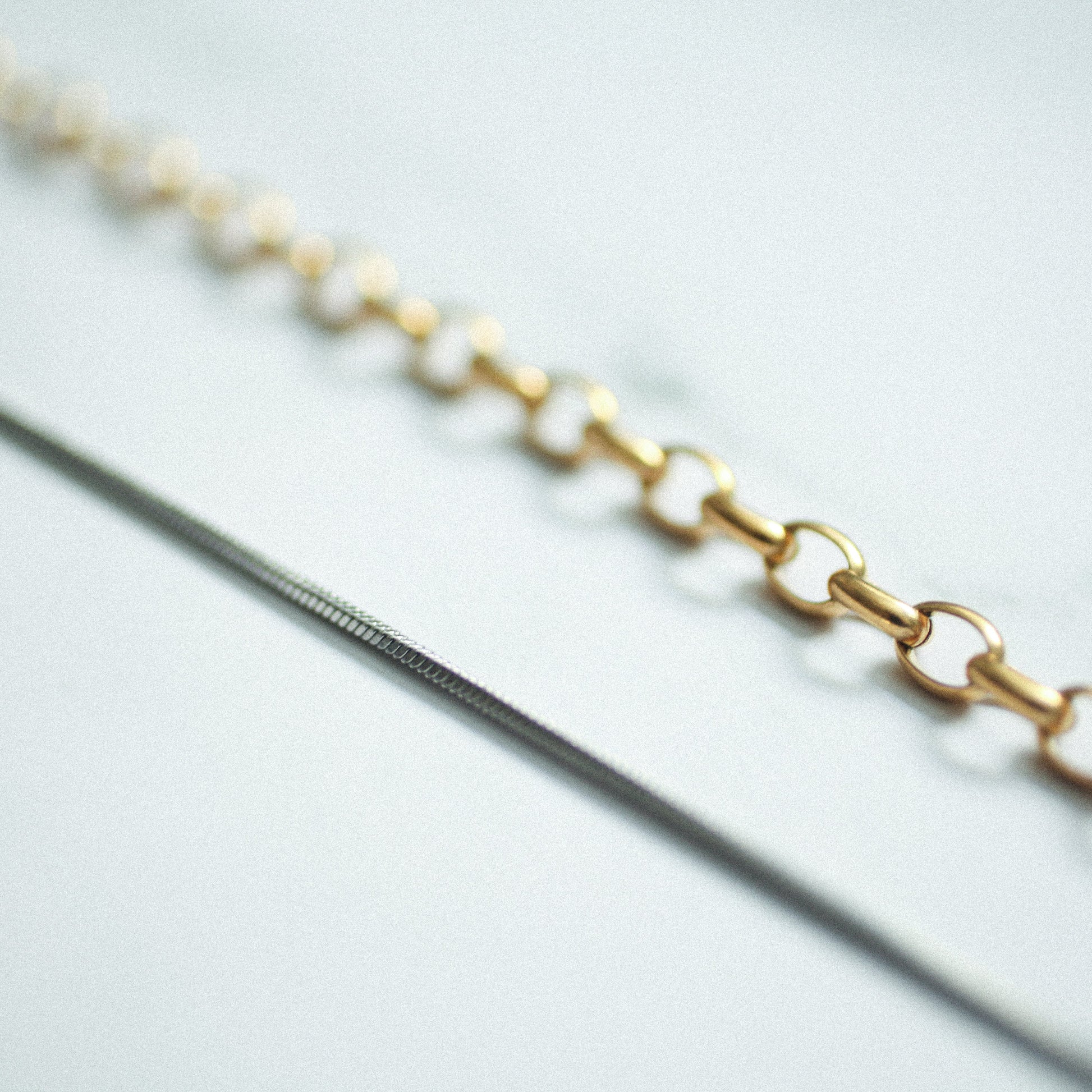 ゴールドチェーンとシルバーチェーンが交差するコンビカラーが、